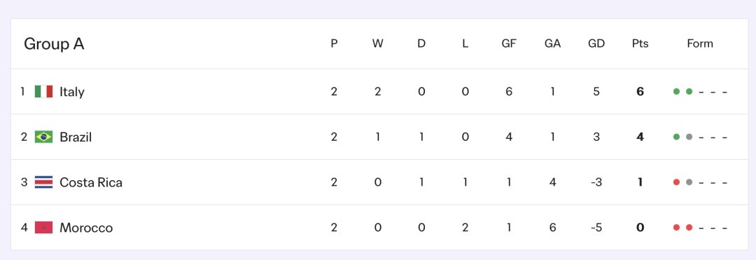 在本组另一场比赛中,好意思国队5比0打败挪威,三战全胜头名出线。字据赛程,中国队将在1/8决赛中对阵A组第二。当今A组出线局势尚存悬念,意大利与巴西或者率锁定前两名,两队将于明日凌晨成功对话决定最终座席。